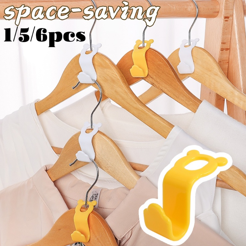 Detail 1per5/6pcs Gesper Sambung Bentuk Beruang Gantungan Konektor Kait Susun Multifungsi Universal Organizer Rumah Gantungan Baju Lemari-Gantungan Hemat Tempat