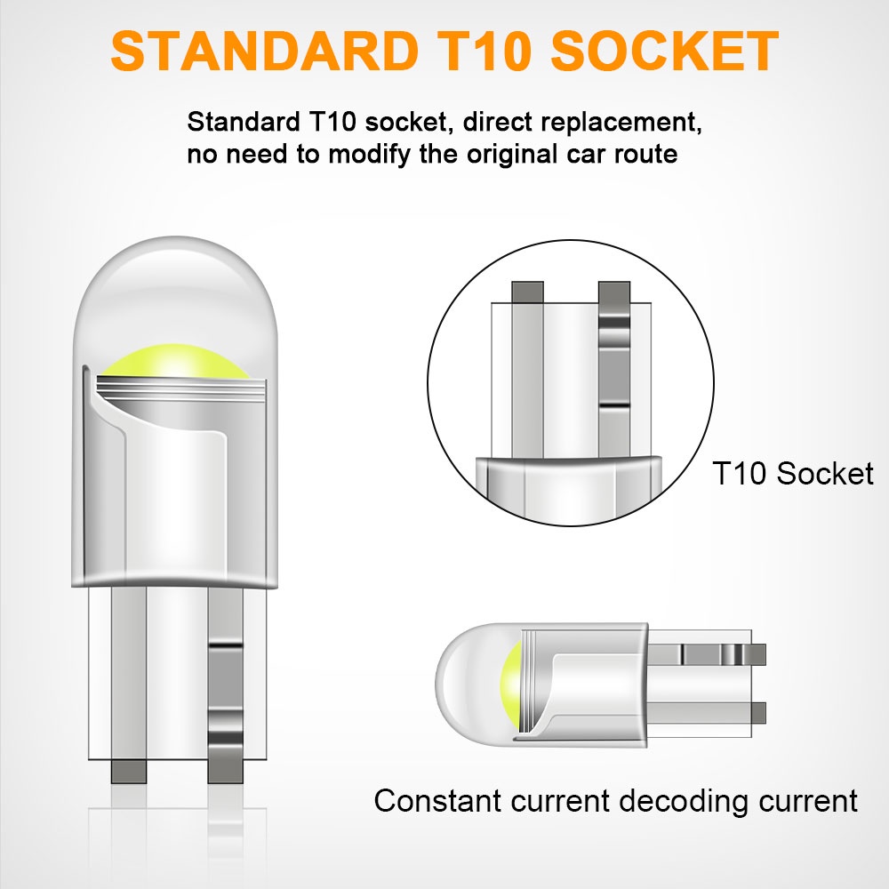♛♛Huraian♛♛ ▸▸ Lampu wedge LED T10 W5W standar, menggunakan chip COB wafer impor, 360° Desain sudut balok menyala di setiap sudut. ▸▸ Kecerahan tinggi, lebih terang dari lampu pijar biasa. Konsumsi daya yang lebih rendah dan lebih Hemat Energi. ▸▸ Ukuran: 9mm * 23mm, Sangat cocok dengan lampu Pijar asli. 1:1 desain, 360°Menyala. Nyalakan jalanmu. ▸▸ Pembuangan panas yang baik, Tahan Suhu Tinggi, Karat. ▸▸ Desain Non-polar, kecepatan respons sangat cepat, dapat dinyalakan dalam mikrodetik. ▸▸ Mudah dipasang, cukup pasang dan mainkan. Pengganti langsung untuk semua T10 Wedge Type W5W, 501,194,168,2825,193, dll. ▸▸ Penggunaan umum untuk Lampu Sisi Depan & Belakang, Bohlam Lampu Parkir, Lampu Cadangan, Bohlam Lampu Ekor, Lampu Lisensi, Bohlam Lampu Kubah, dll.