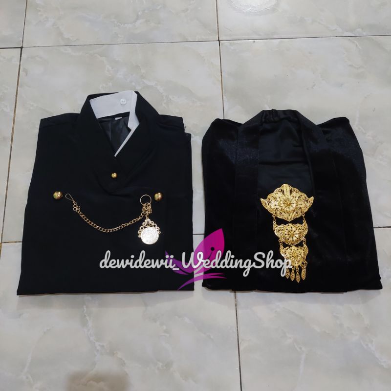 Deskripsi Produk : - Beskap : bahan tesa, warna hitam, model jawa - Kebaya : bahan bludru, hitam, model kutubaru - Jarik & blangkon : motif sama