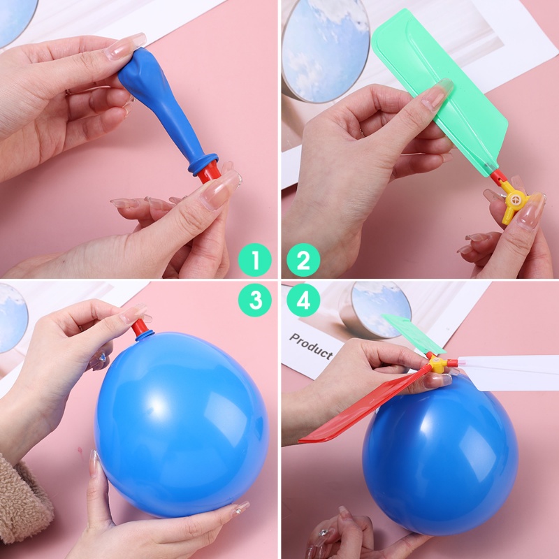 Detail 1set Mainan Helikopter Balon Handmade Warna Acak Yang Menyenangkan/Mainan Balon Baling-Baling Kreatif Dapat Terbang/Alat Peraga Permainan Bermain Luar Ruangan Anak-Anak