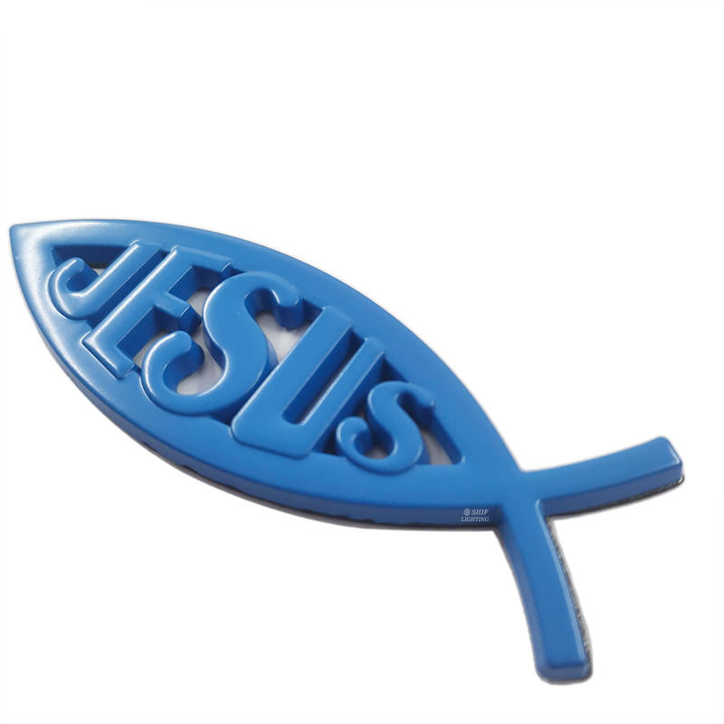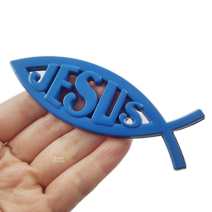 Otomotif > Aksesoris Eksterior Mobil > Stiker, Logo, & Emblem Mobil > 1x Kecil Biru Logam Logo Ikan Yesus Mobil Hias Sisi Belakang Emblem Stiker Decal Xmas Hadiah Natal
