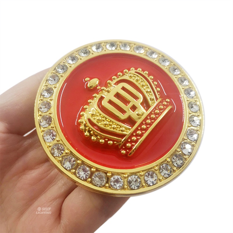 Detail 1x Logam Emas Kristal Berlian Mahkota Bonnet Badge Emblem Mewah VIP Crown 3D Logo Emas/Merah Hadiah