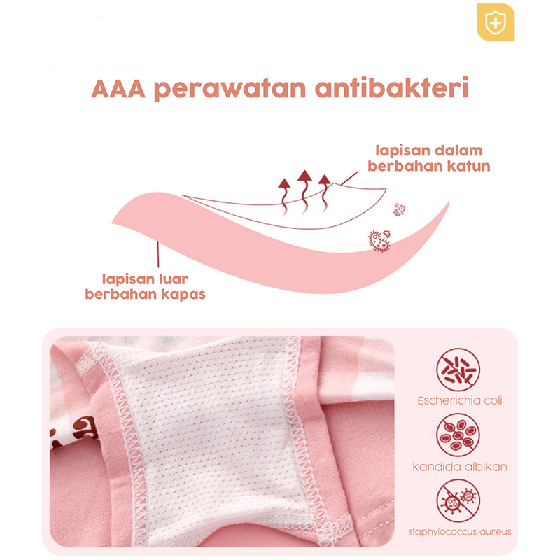 Variasi 4 in 1 ( isinya 4 pcs ) Pakaian dalam katun anak-anak dirancang khusus untuk anak-anak, dan ibu lebih nyaman. pengerjaannya sangat indah, longgar dan nyaman, dan celana elastisnya pas di kaki bayi tanpa menahan bayi. tangan terasa halus, nyaman dan lembut, dan selangkangan bawah ganda tahan lama dan bisa dicuci.