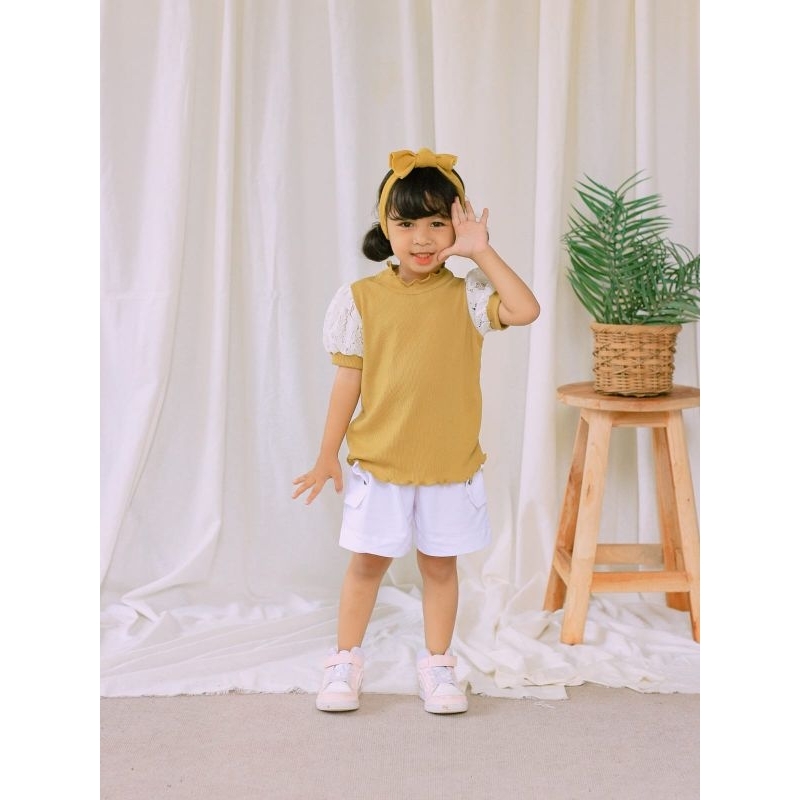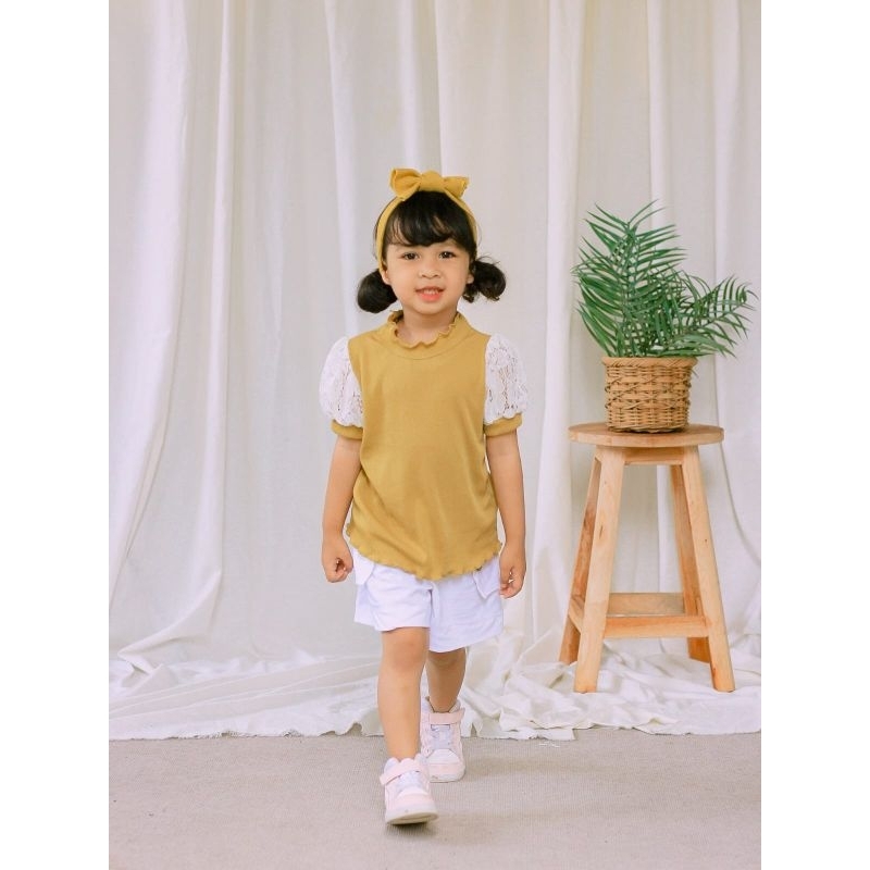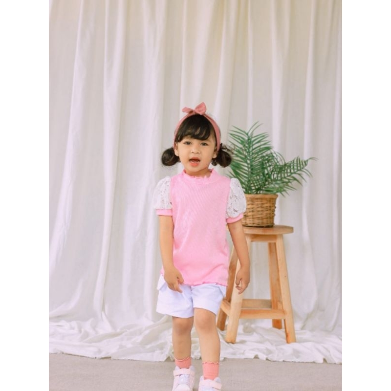 Detail 2-4 Tahun Kaos anak Perempuan BROKAT RIB KNIT Atasan Anak Brokat Blouse Anak