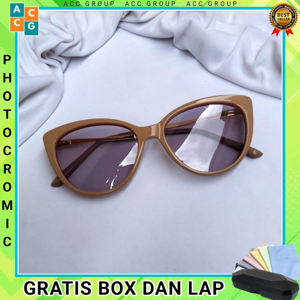Detail 2 In 1 Kacamata lensa photocromic anti radiasi wanita pria kacamata bingkai Titanium Fuji Cat Eye Anti UV fotocromic