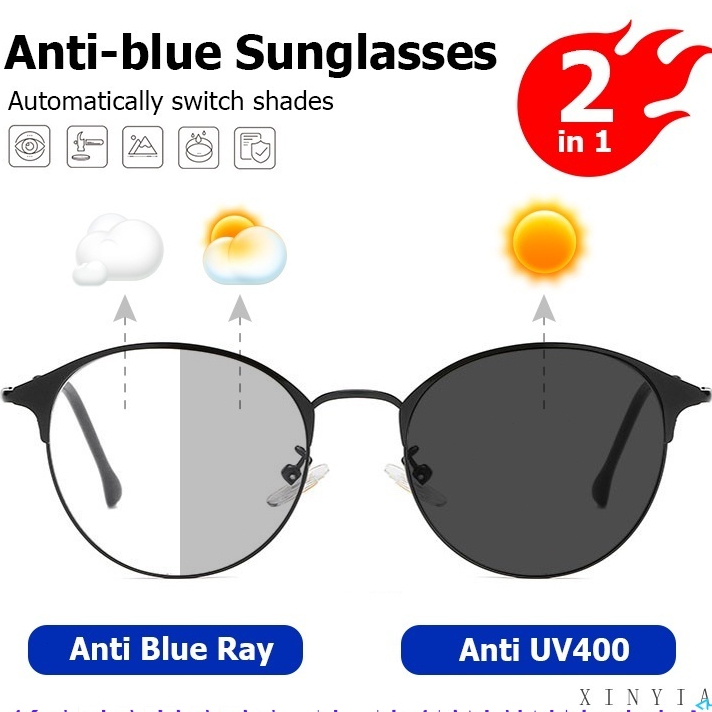 Aksesoris Fashion > Kacamata & Aksesoris > Frame & Lensa Kacamata > [2 In 1 Photocromic] Kacamata Lensa Photocromic Anti Blue Ray Radiasi Wanita Korea Besi Frame Kacamata Komputer Anti Silau 2 In 1 Potocromic Fotocromik Fashion Anti Sinar Matahari UV400 Kaca Mata Hitam - SR