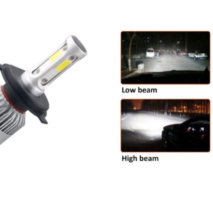 Deskripsi Lampu Mobil Headlight LED COB 72W 8000LM H4 2 buah HI Lo Beam Power DC12V constant current driver dan 72W per 2 pcs lampu ( 36W per lampu ) Material Body : Alumunium Alloy Cahaya Lumen: 8000LM per 2PCS ( 2 buah lampu ) Emitting Color: 6500K/Cold White Waterproof: IP65 SUPER Waterproof Lamp Life: > 30000 hours Led Beam Angle: 360 degree with Projection lenses Headlight irradiation distance >= 200M