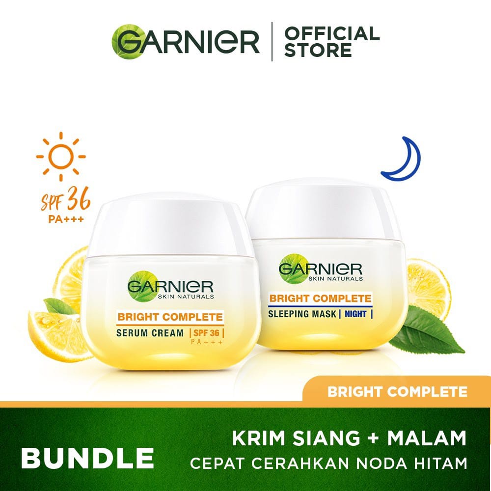 Detail (Dapat 2 pcs Cream Siang + Malam) Paket Garnier LIGHT BRIGHT COMPLETE Day Cream & Night Cream Sleeping Mask - 50 ml / 20 ml - Cream Garnier Kuning Krim Pagi Siang & Malam BPOM Ukuran Besar / Kecil