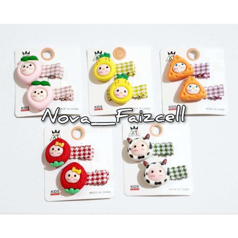 Detail 2 pcs / Set - Jepit Rambut Anak Fruit Animal Import Jepitan Premium
