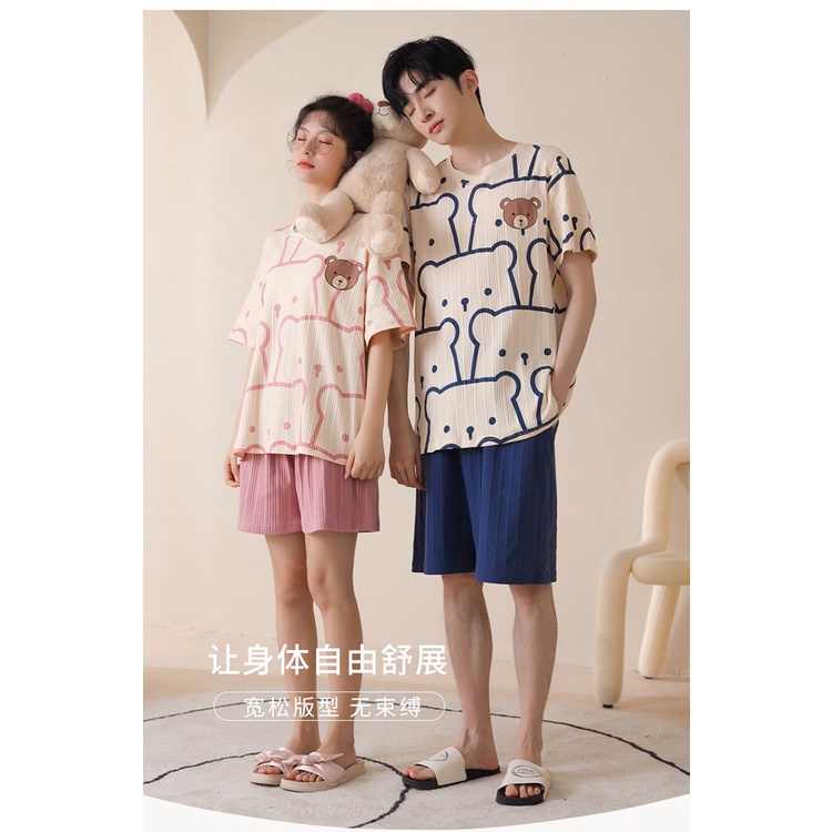 2 set harga Beli satu dapat satu pasangan piyama lengan pendek musim panas katun musim panas bagian