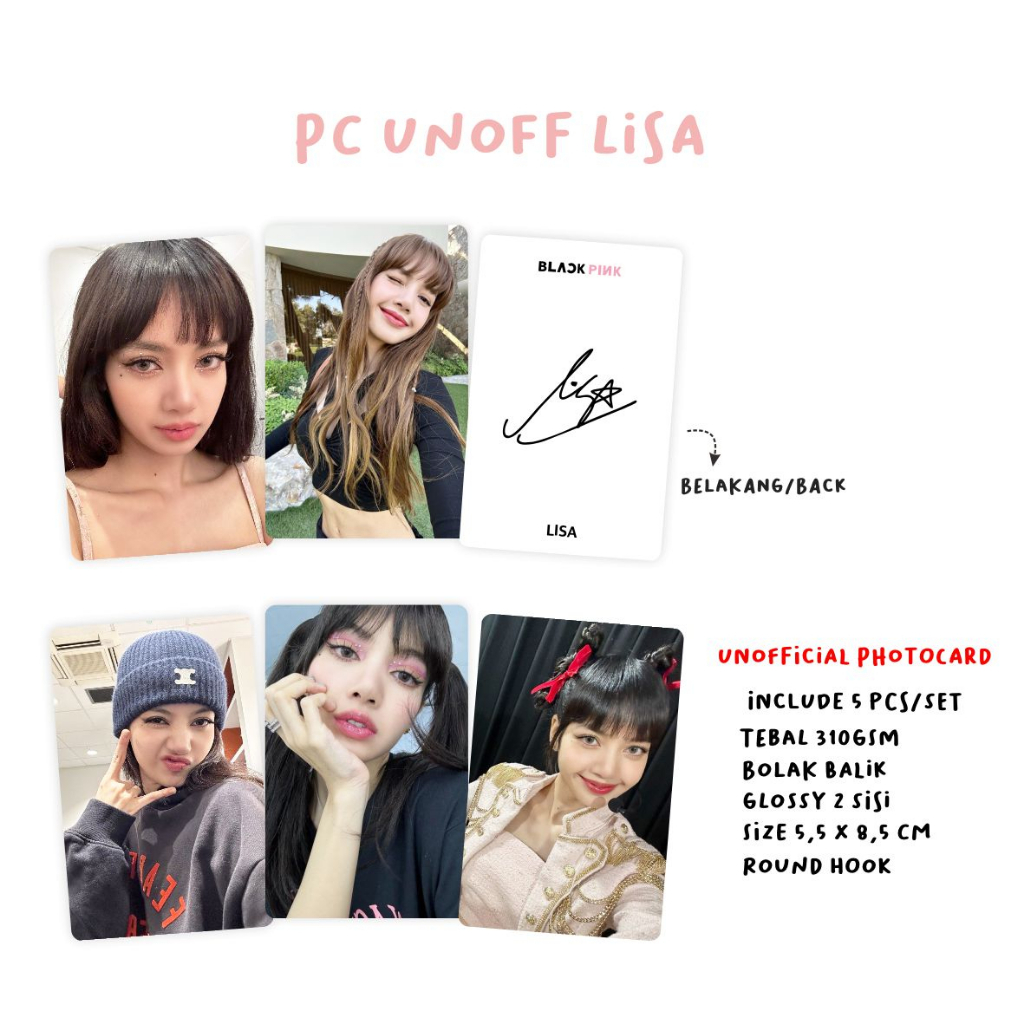 · Jumlah per set 5 pcs (setiap membernya) · Bahan kertas art paper 310gsm · Photocard sudah 2 sisi · Laminasi Glossy dua sisi · Ukuran 5,5 x 8,5 cm · Round cut