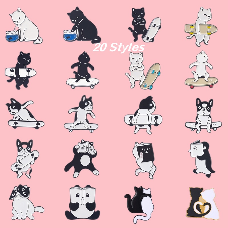 Detail 20 Gaya Pin Lapel Bentuk Kucing Anjing Skateboard Untuk Aksesoris Pakaian