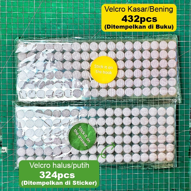 CARA TEMPEL STICKER PEREKAT Tempelkan bulatan putih (Velcro) pada gambar yang kita mau dan ditempelkan di lembaran dengan gambar yang sama. Dan bisa di copot pasang.