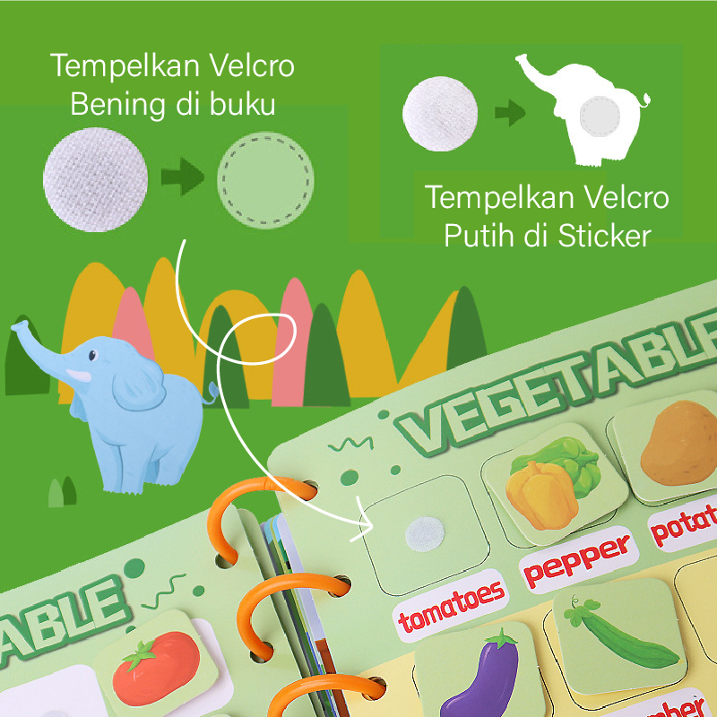 INFORMASI PRODUK: 1. Tema: buah, huruf, pakaian, hewan liar, hewan peternakan, angka, kendaraan, anggota keluarga, anggota tubuh, warna, sayur, buah-buahan, dll. 2. Wipe clean, tahan air, tempelan velcro kuat & mudah dipasang 3. Usia 24 bulan keatas keatas 4. Memiliki 20 lembar dan 13 lembar sticker 5. Velcro : - Halus = 3 Lembar - Kasar = 4 Lembar
