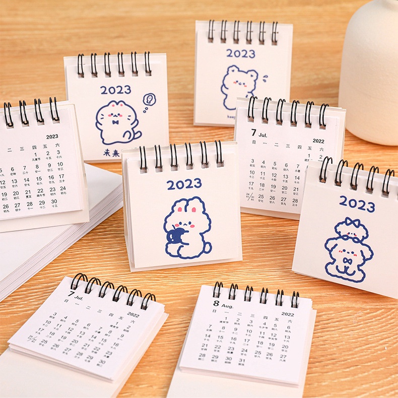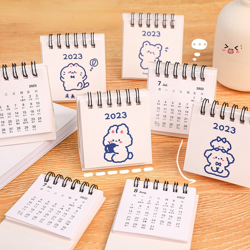 Detail 2023 Kalender Meja Mini Model Flip Desain Acak Untuk Kantor