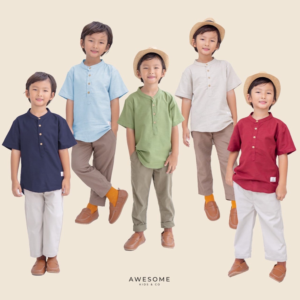 Brand : Awesome kids Bahan : Premium Linen Linen yang halus dan adem sehingga nyaman dipakai oleh anak.