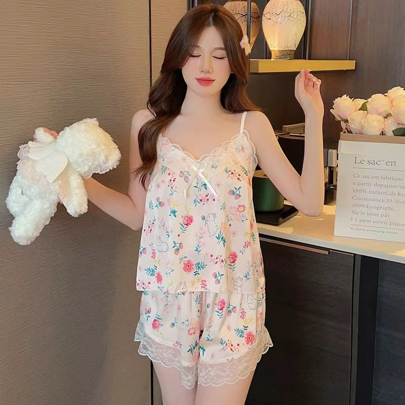 Detail 2023 Piyama Lady Ice Thin Thin New Piyama/Suspender Celana Pendek Dua -Orang Layanan Rumah