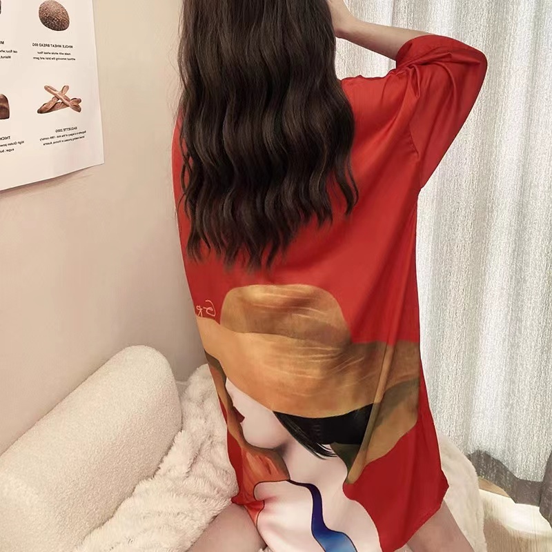Detail 2023 Piyama Wanita Longgar Baru/Nightdress Thin/Leisure Mid -Length Home Service