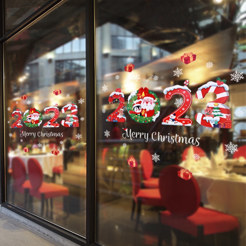 Detail 2023 Stiker Dinding Jendela Desain Snowflake Santa Clause Bahan PVC Untuk Dekorasi Rumah