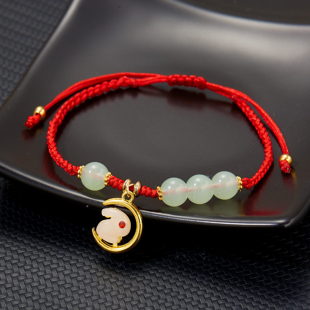Detail 2023 Zhaocai Lunar Gelang Tangan Batu Giok Motif Kelinci Keberuntungan Untuk Pasanganpriawanita