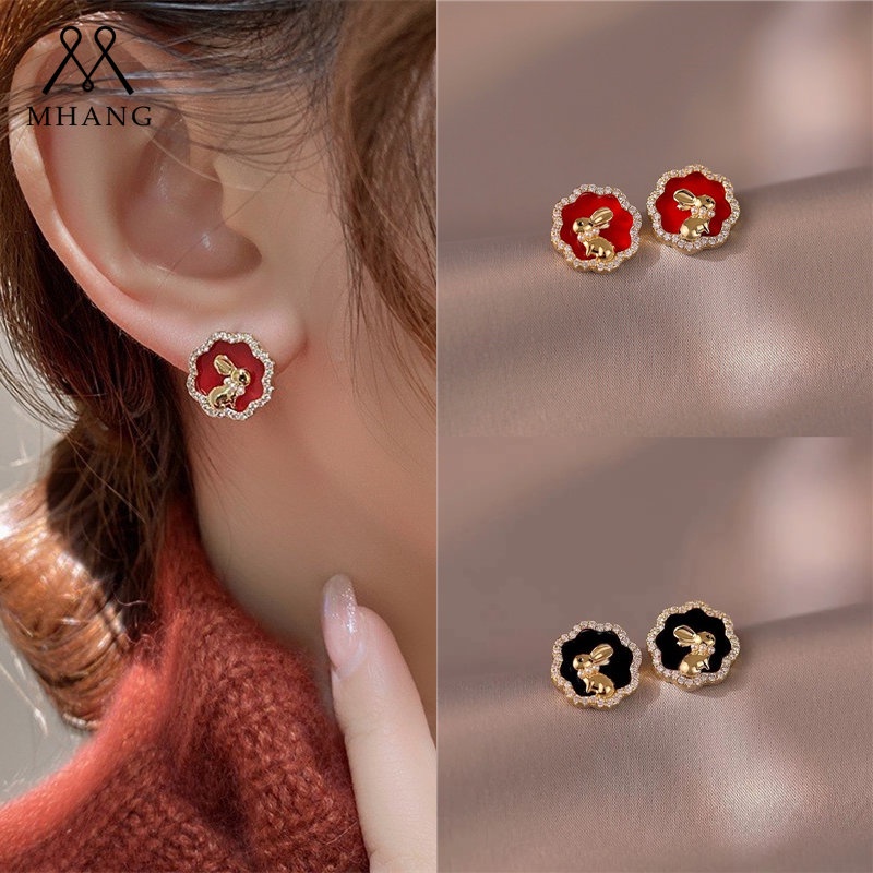 Detail 2023anting Karangan Bunga Kelinci Emas Baru Fashion Tahun Baru Bunga Anting Mutiara Hadiah Tahun Baru Aksesoris Fashion