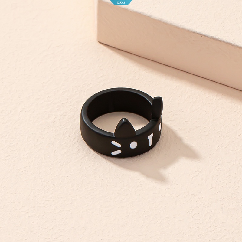 Detail 2023baru Lucu Wajah Hitam Cincin Wanita Fashion Manis Pasangan Cincin Pernikahan Jari Aksesoris Perhiasan Non-adjustable Pembukaan Cincin [ZK]