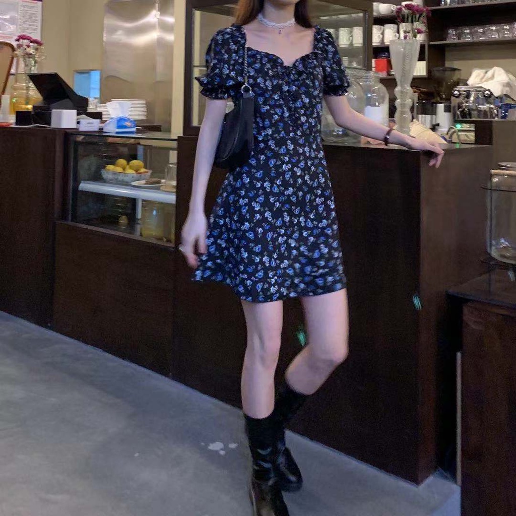 Detail 2023Gaun Bunga Wanita, Retro Perancis SifonaRok Kata