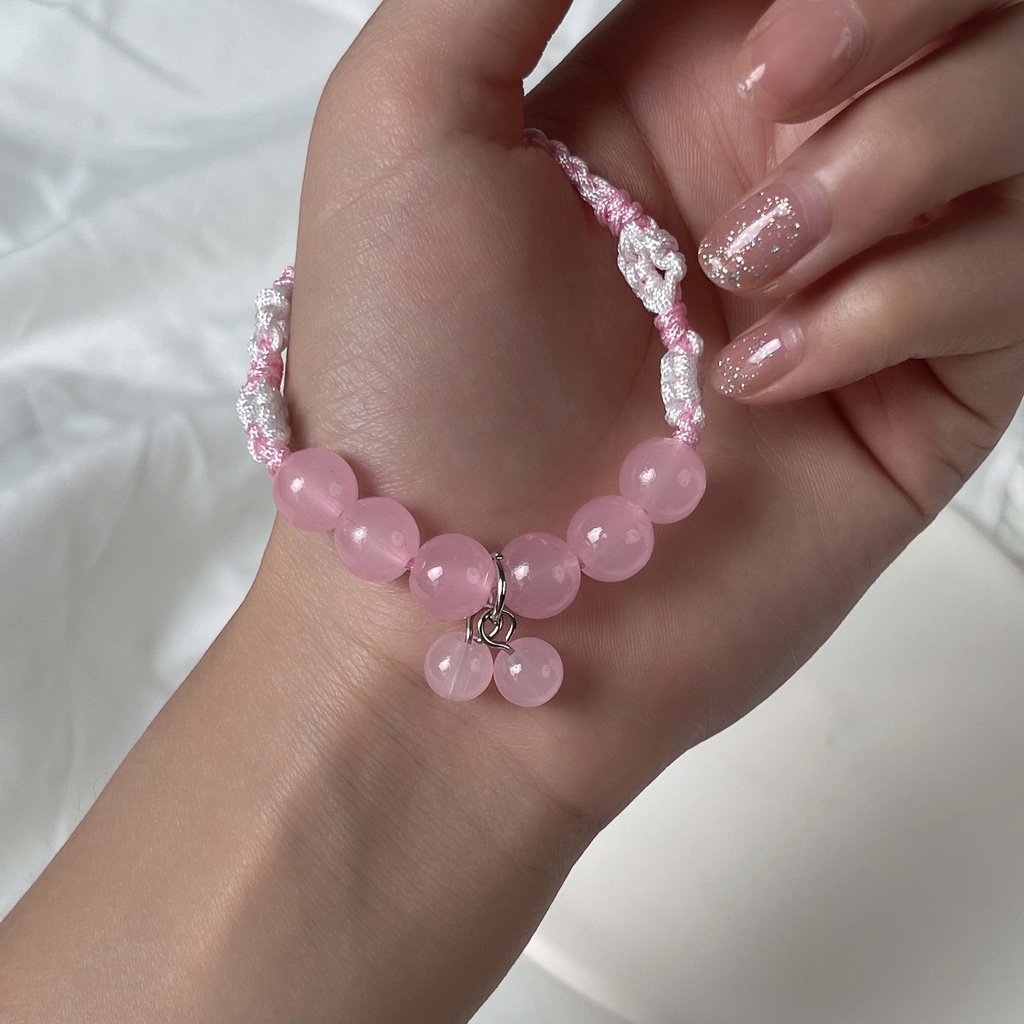 Detail 2023gaya Baru Peach Zhizhi Natural Pink Gelang Kristal Niche Gadis Jantung Gelang ins Braided Beaded Gift