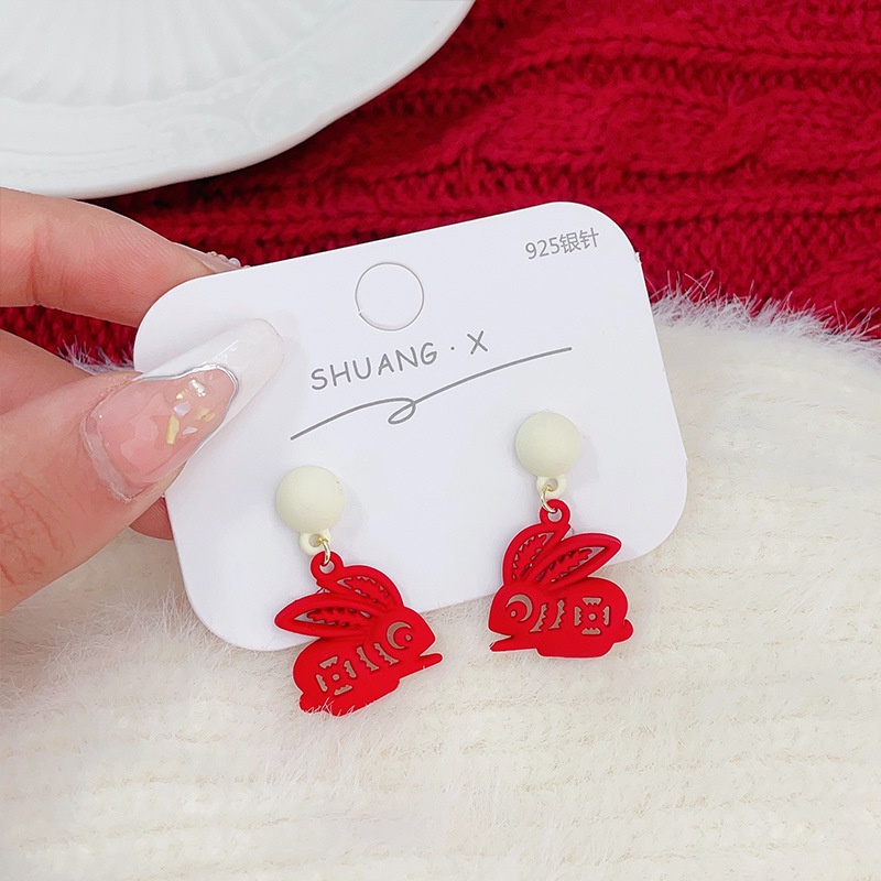 Detail 2023tahun Baru Merah Kelinci Ikatan Simpul Anting Gaya Cina Baru Joy Pendant Earrings S925 Perak Jarum Anting Wanita