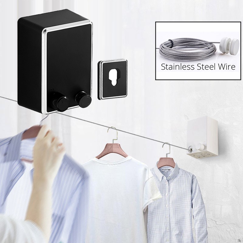 Perlengkapan Rumah > Alat Pemeliharaan Rumah > Tali Jemuran & Rak Pengering > 20KG 4.2M Jemuran Baju Portable Indoor Outdoor Retractable Tali Clothesline Bahan Stainless Hitam Putih