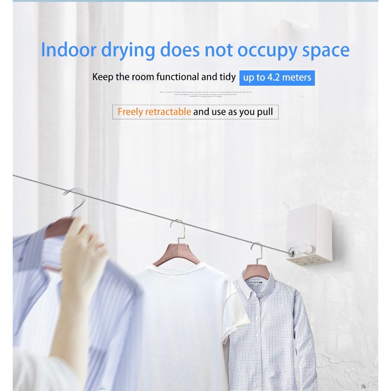 Detail 20KG 4.2M Jemuran Baju Portable Indoor Outdoor Retractable Tali Clothesline Bahan Stainless Hitam