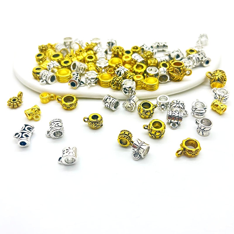 Detail 20pcs Emas Perak Alloy Tee DIY Lubang Besar Logam Penghubung Manik-Manik Cocok Untuk Membuat Gelang Menawan Kalung Liontin