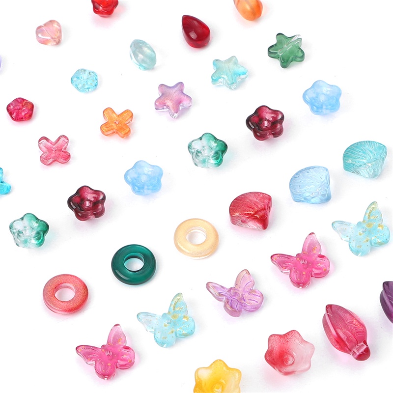 Detail 20pcs Random Kristal Lily of the Valley/Magnolia/Butterfly/Shell/Osmanthus/Star AB Manik-Manik Longgar Kaca Warna-Warni Untuk Handmade Kalung Gelang Pesona Aksesoris