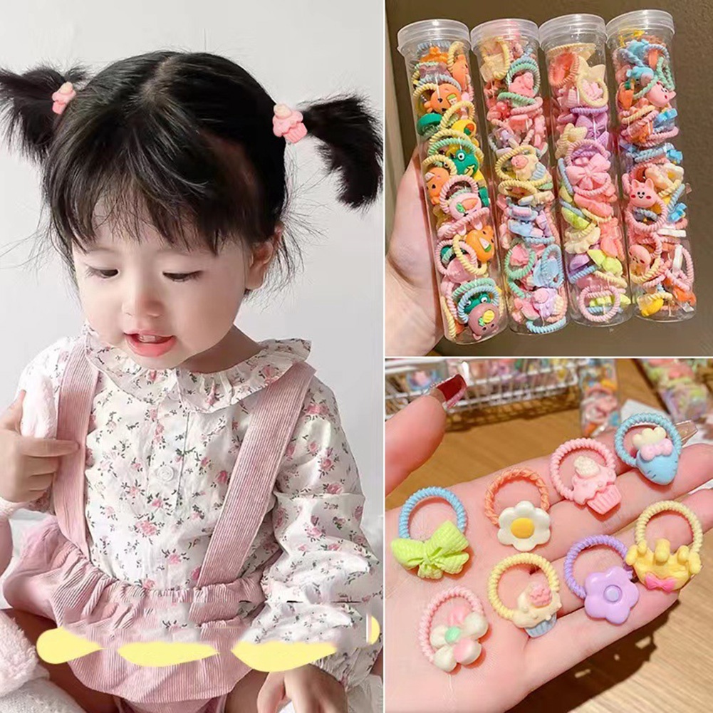 20pcs/set Aksesoris Rambut Ornamen Pita Scrunchies Manis Busur/Bunga/Buah Hairband Gadis Warna-Warni Hiasan Kepala