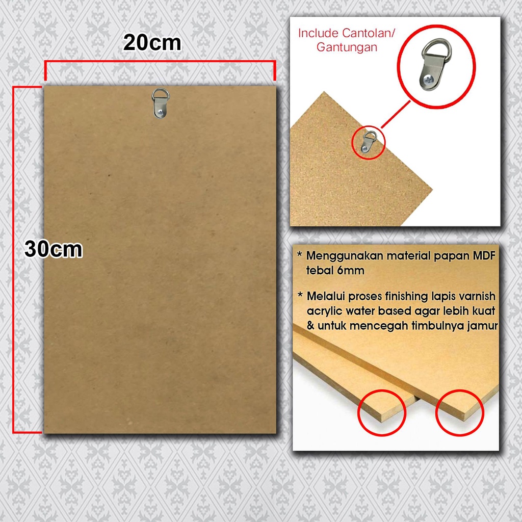 * Ukuran uk 20x30cm ( tersedia ukuran sedang 15x20cm dan ukuran besar 31x46cm )