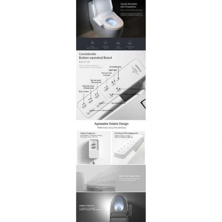 3. 4-grade Adjustable Water Temp. Pressure Seat Temp. -Easy to customize your optimum water temperature, seat temperature and washing pressure -As you sit down, the inserted sensor senses the user sitting on the toilet seat and automatically turn down the temperature, avoiding from burning your skin