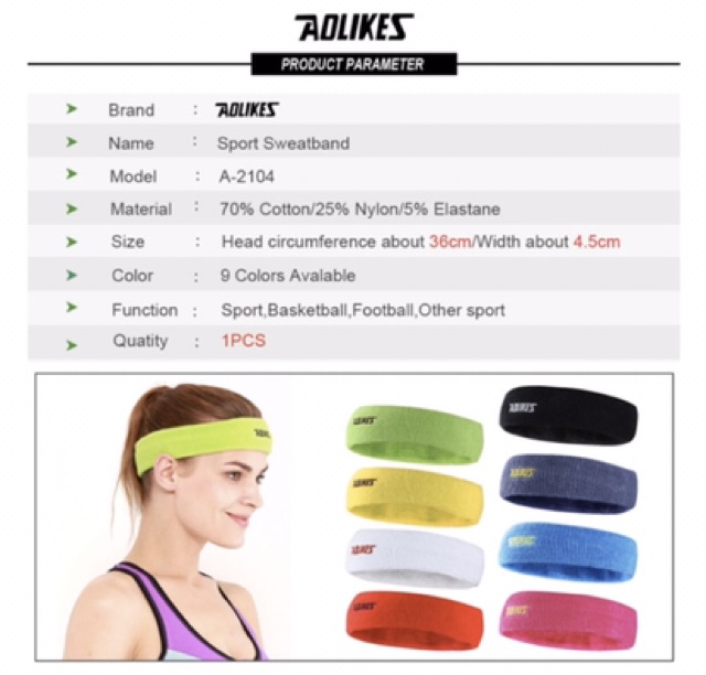 Detail 2104 AOLIKES HANDUK KEPALA HEADBAND SWEAT BAND FITNESS GYM YOGA TENNIS
