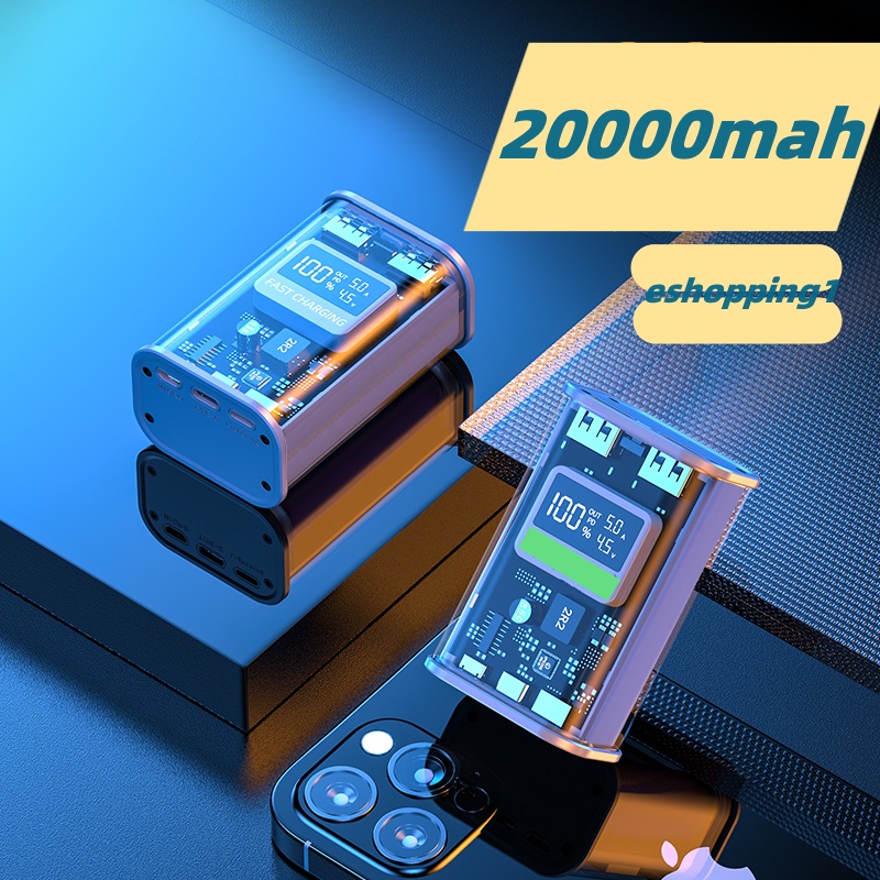 Features 【Trendy cool, mini portable】 Transparent shell design, full of technology. Mini size, easy to carry [Two-way fast charging, strong compatibility] Support the latest 20W, PD fast charge, 22.5W fast charge output/input, it only takes 2 hours to fully charge the power bank 【High Quality Lithium-Ion Batteries】 Using high-quality lithium-ion batteries, fast charging does not get hot, and charging is safer 【Two-way output】 Support two devices to charge at the same time, no longer afraid of power failure when playing mobile phone [Real-time power LED screen display] [Compliant with the air carry standard, you can carry it on board]