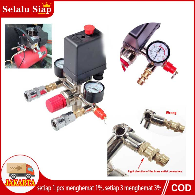 Perlengkapan Rumah > Perkakas > Kompresor Udara > 220V Pressure Switch Air Valve Manifold Air Compressor Pressure Control Regulator Gauge Regulator Gauge