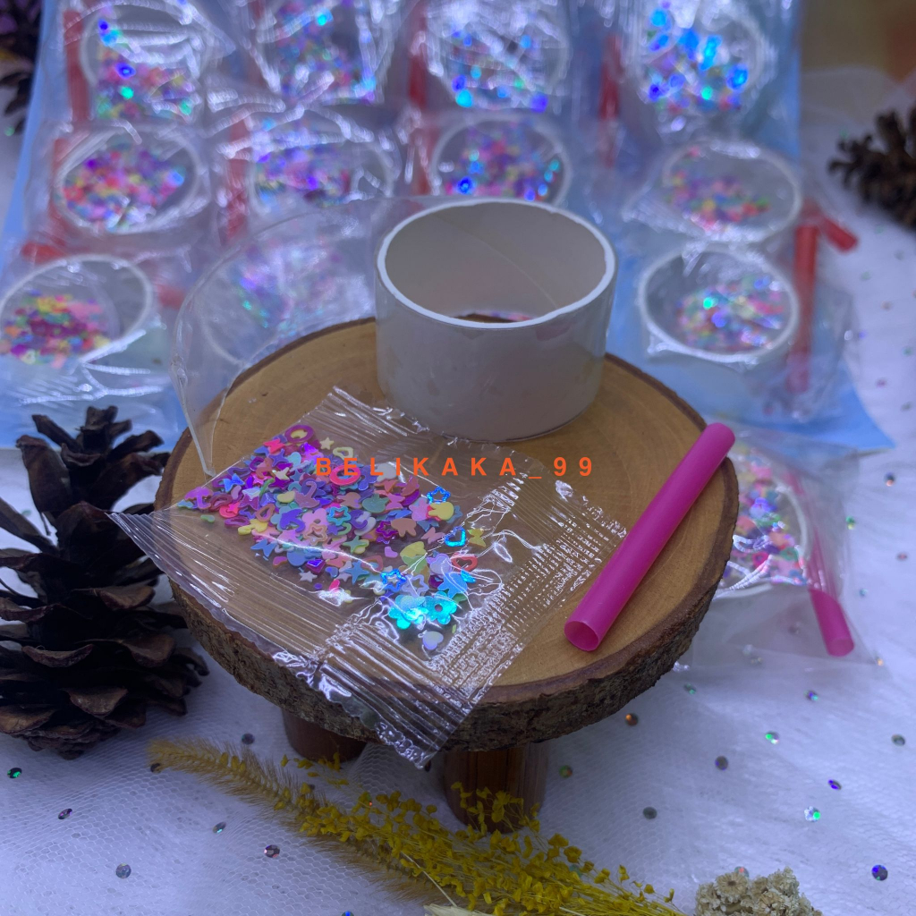 β’ 1 SET BALON TIUP MANIK ROLL B 1 SET BERISI: - 1 PCS SEDOTAN - 1 BUNGKUS MANIK-MANIK / GLITTER - 1 ROLL BUBBLE NANO TAPE -+ 16 CM