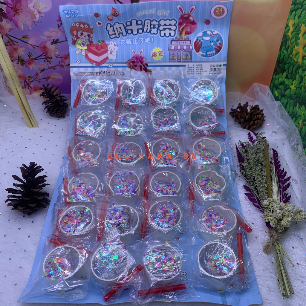 β’ 1 SET BALON TIUP MANIK ROLL 1 SET BERISI: - 1 PCS SEDOTAN - 1 BUNGKUS MANIK-MANIK / GLITTER - 1 ROLL BUBBLE NANO TAPE -+ 33 CM
