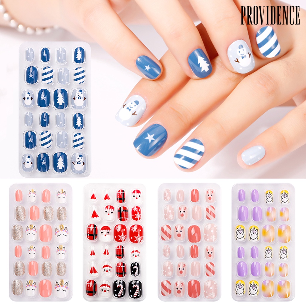 Detail 24pcs / Box Kuku Palsu Removable Motif Kartun Natal Untuk Wanita