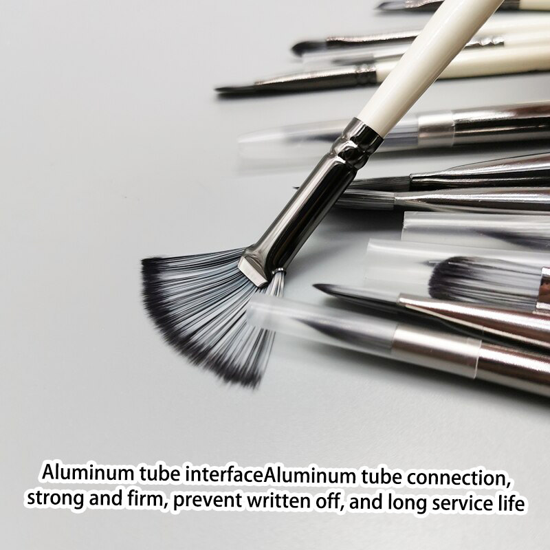 ⚡Fitur: 【Imported Nylon Hair】 The brushes adopts high quality nylon hair, soft and flexible, not easy to deform and shed hair, easy to absorb the paints. This excellent brush set make your artistic expression better. 【White Wood Handles】 The handles are made of wood material, environment-friendly paint surface, smooth and durable, comfortable hand feeling. Handles are also printed in different sizes for easy use. 【Metal Ferrules】 Aluminum tubes ensure firm use, durable and reliable, not easy to rust, effectively prevent the brush head falling off.