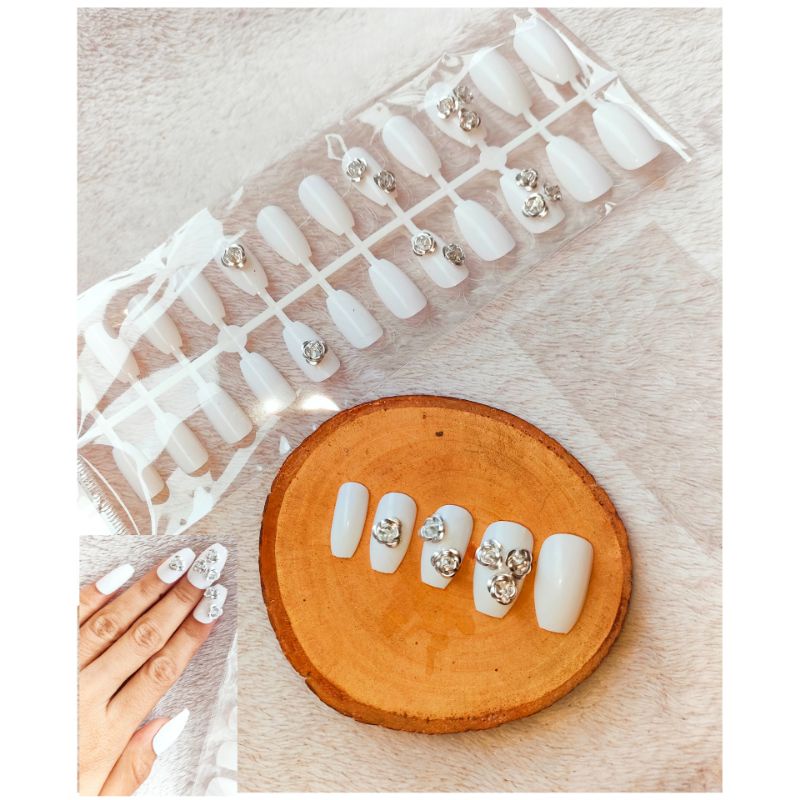 kuku palsu isi 24pcs TANPA BOX dengan motif yang muncul/3D. simple dan elegan.