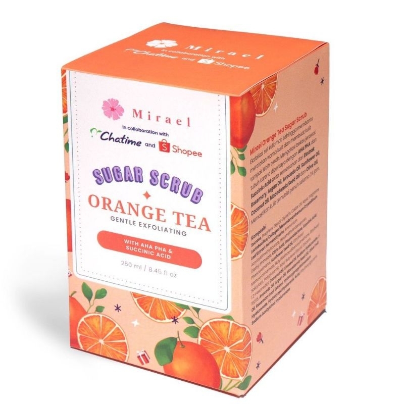Orange Tea Sugar Scrub dilengkapi dengan AHA PHA & Succinic Acid yang dapat menutrisi penuh kulit dan membantu mengatasi bekas jerawat.