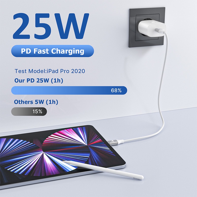 Details: 1. The choice of global customers: So far, we have provided high-quality charging products to users in many countries around the world. Welcome to our big family, your satisfaction is the greatest driving force for us to move forward. 2. Lightweight and compact: The 25W type C charger is small, lightweight and very convenient to carry. It fits easily in your pocket or bag, whether on business trips, travelling or on a trip. 3. Safe and reliable: The USB C charger 25 W has passed several certifications such as UL, CE, FCC etc. and has built-in 20 protection layers such as overcharge protection, overheating protection and short circuit protection. 4. 5x faster: MobileID 25W USB-C charger supports the PD 3.0 protocol. It can charge the iPhone 13 to 58% in 30 minutes, which is 5X faster than the original charger. 5. Durable material: It is made of fireproof PC material, is strong and drop-resistant and supports daily use. It is the best choice for chargers. 6. Easy to use: Simply connect it, connect any existing USB charging cable and you can use it immediately. 7. Accompanying protection for charging safety: The improved circuit board is used internally and the current is supplied by the current limiting and constant voltage method, effectively ensuring the safety of charging. 8. Smart design protects against overload, over current, over voltage and short circuit to protect your devices safely and effectively from damage.