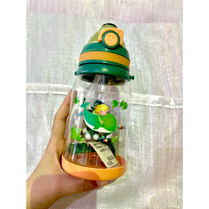 "Botol minum portable dengan sedotan dan mulut silikon terbuat dari bahan PP yang sudah food grade, tahan terhadap dingin dan panas, kapasitas 550ml Sangat cocok sebagai tempat air minum anak, tidak terlalu berat, menambah beban gendong anak, dan juga cocok bagi pelajar untuk membawa air setiap hari. Keunggulan dari botol air minum ini