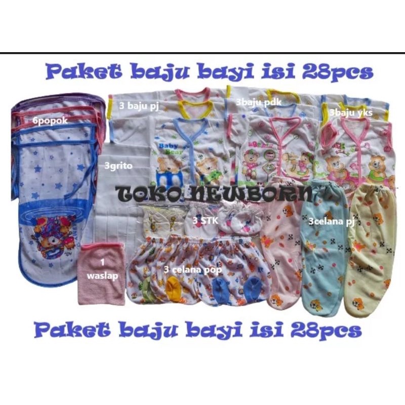 28 pcs Paket Perlengkapan Baju Bayi Baru Lahir (Newborn) Ekonomis dan Hemat