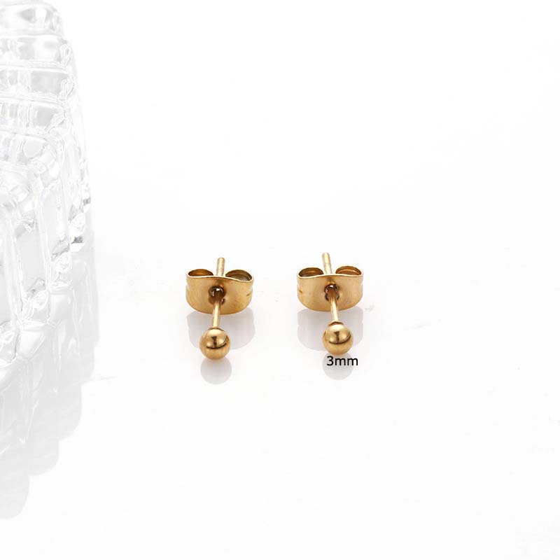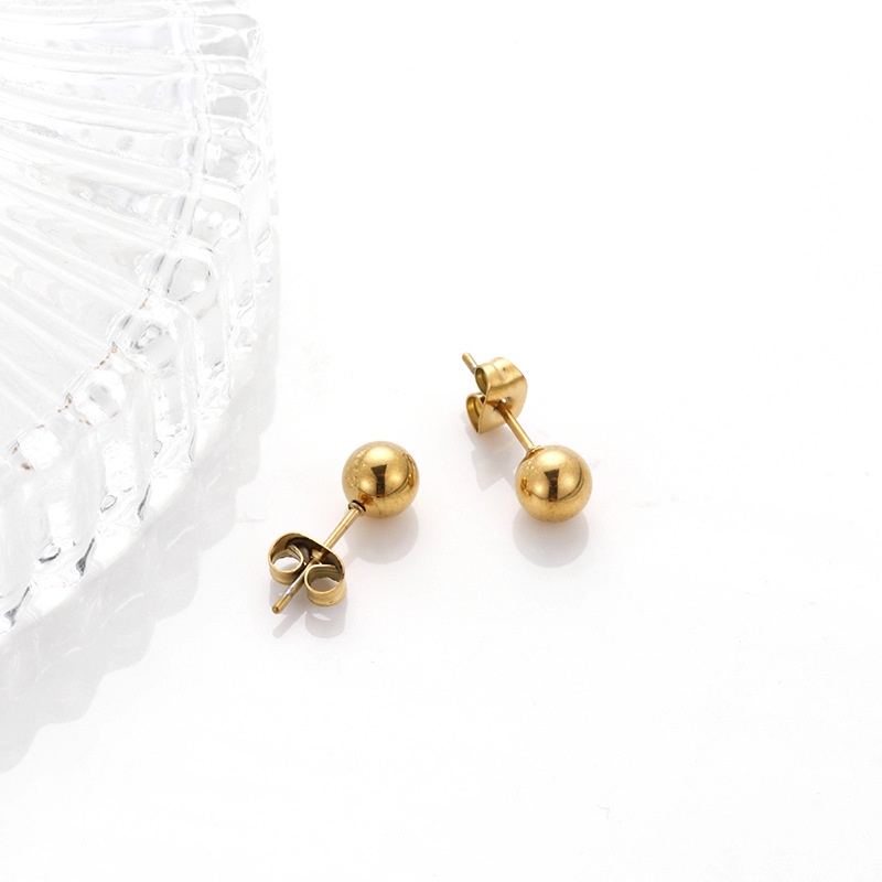 Detail 2biji Anting Kacang Manik-Manik Bola Bahan Stainless Steel 2-6 mm Gaya Sederhana Untuk Pria Dan Wanita Warna Emas Perak
