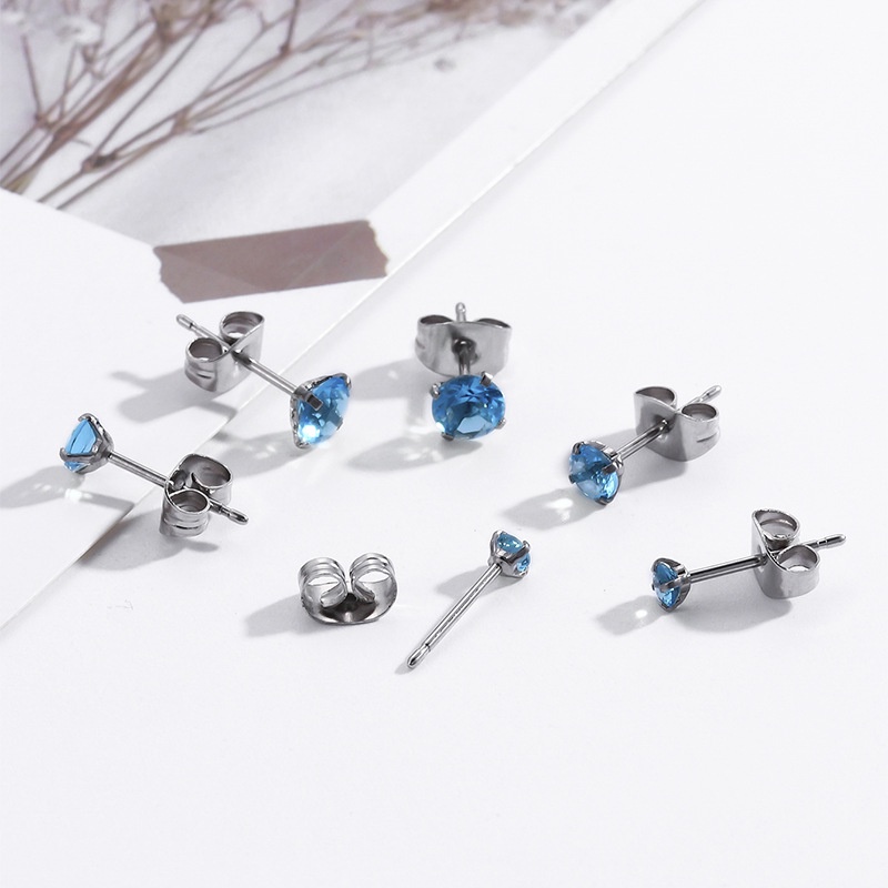 Detail 2biji3 /4/5mm Warna Putaran Zirkon Anting 4-cakar Kecil Segar Tindik Sederhana Stainless Steel Anting-Anting